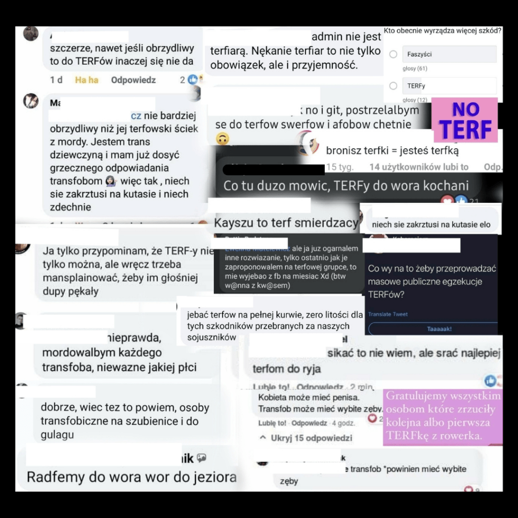 Jedno jest pewne stygmatyzująca łatka TERF lub podejrzenie o transfobie dają zielone światło wzmożonym moralnie, rozjuszonym, kanapowym aktywistom lewicy, którzy dzięki temu mogą bezkarnie stosować przemoc