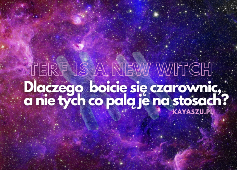 Jako, że podobieństwo polowań na TERFy i polowania na czarownice jest nadzwyczaj duże, wiele osób na zachodzie używa hasła „TERF is a new witch„. Różnica jest taka, że przewiną są nie urojone czary czarownic, a urojona transofobia i brak inkluzwności TERFów, a karą nie realny ogień stosów, ale społecznościowe morderstwo w formie cancel culture. Z racji podobieństw do inkwizycji zwykłam mawiać na te polowania – INKLUZYCJA, od słowa inkluzywność.