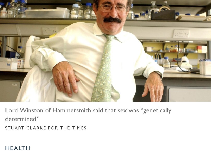 Z The Times dowiadujemy się, że Lord Winston z Hammersmith jest kolejnym, który swoimi słowami odważnie stawia tamę kłamstwom transaktywistów. Lekarz twierdzi, zgodnie z konsensusem naukowym, że płeć jest „genetycznie zdeterminowana”, dlatego on sam też kwestionuje prawo, które zezwala na udział w rywalizacji sportowej trans kobiet (tj. mężczyzn identyfikujacych się jako kobiety) w kategoriach przeznaczonych tylko dla kobiet.